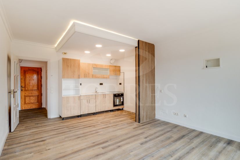 The property offers approximately 70 m², distributed into an entrance hall, living room with open-plan kitchen, two bedrooms with built-in wardrobes, and a bathroom. Both the kitchen and bathroom have been renovated, allowing for immediate occupancy without the need for additional investment.